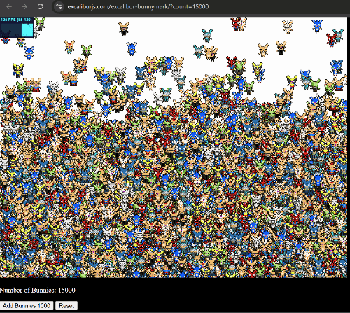 We also have a new Excalibur Bunnymark that stresses the renderer, I can get to 100k at 30fps on my Surface Pro Laptop!